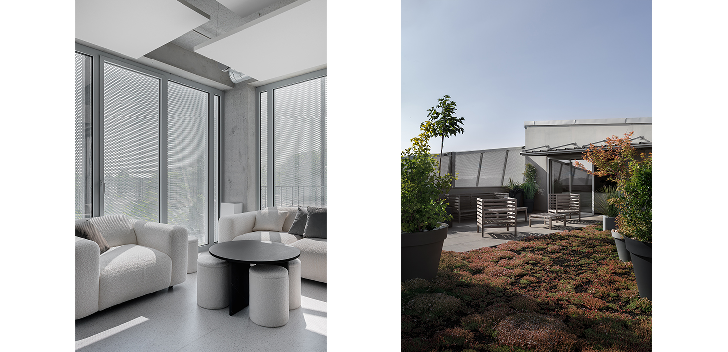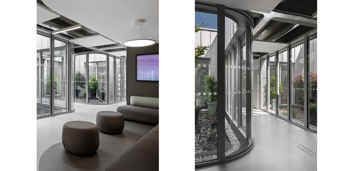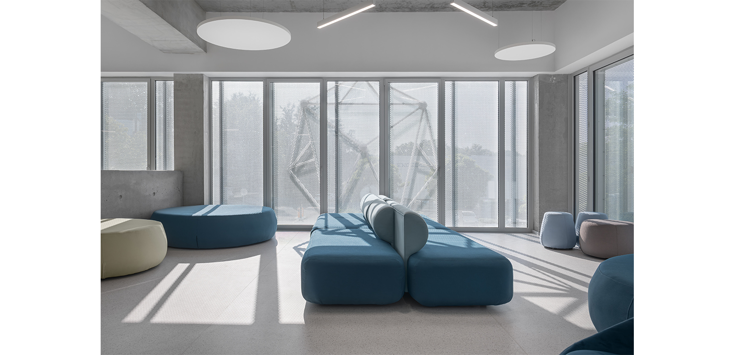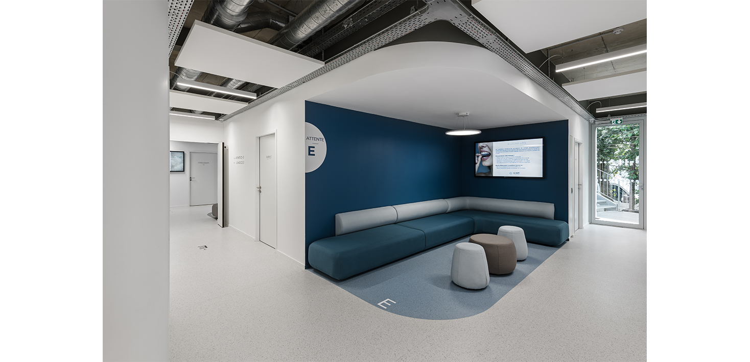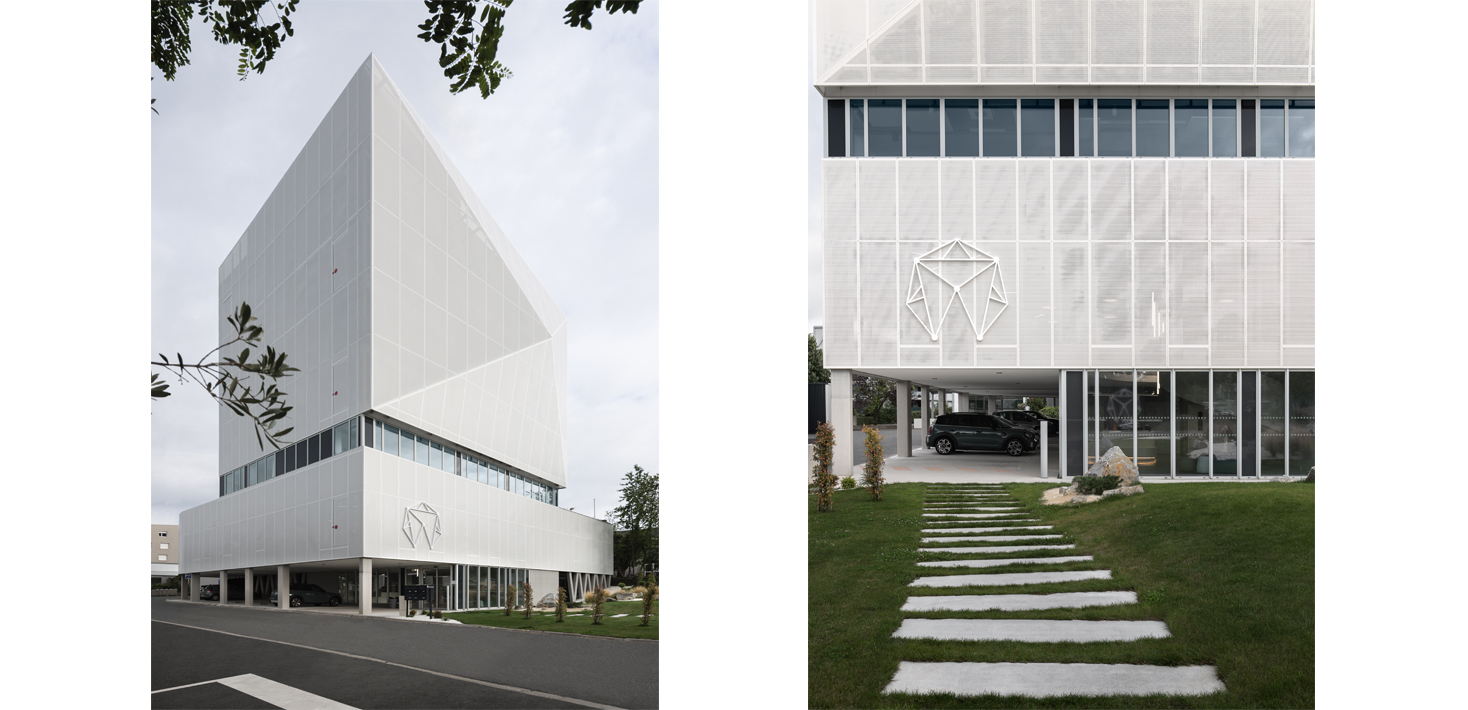 Derrière cette façade épurée et quelque peu abstraite, se cachent de réelles fonctionnalités. La peau répond à un double besoin : l’un lié à l’usage, l’autre à l’environnement proche. Elle permet, d’une part, de préserver la vue depuis l’espace public, notamment vers les espaces de soin, par l’effet moucharabié qu’elle produit et, d’autre part, propose depuis l’intérieur des espaces pleinement vitrés vers l’extérieur tout en maîtrisant les apports solaires.